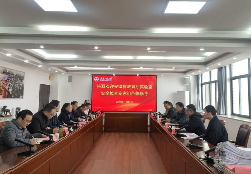 11月27日,由安徽师范大学资产与实验室管理处处长王传辉带队的省教育厅实验室安全检查组,一行5人来我校开展2025年度高等学校实验室安全现场检查。副校长周虹屏出席会议,相关职能部门和部分学院负责人参加会议。会议由国有资产与实验室管理处处长胡章文主持。